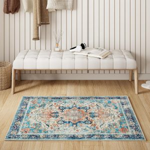 Entryway Rug – 2’x3′ Boho Soft Low Pile Washable Area Rug, Non-Slip Small Rugs Indoor for Front Door Entrance Kitchen Bathroom, Vintage Carpet Stain Resistance (Multi, 2x3ft)