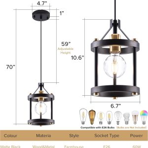 -20% MO&OK Chandelier Set of 3 Vintage Pendant Light Fixture, Black Farmhouse Wooden Metal Chandeliers, Open Frame Hanging Lighting for Diningroom,Bar,Entrance Hall,Kitchen Island Living Room