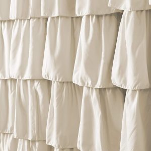 Lush Decor Ruffle Shower Curtain | Floral Textured Vintage Chic Farmhouse Style Design, Ivory, 72″ x 72″